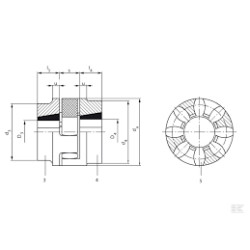 Муфта в сборе состоит из двух полумуфт часть 3 и часть 4, двух закрепительных втулок и упругого элемента. Материал - серый чугун.